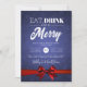 Elegant Christmas Party / Holiday Party / Winter Party Invitation template with "Eat, Drink & Be Merry" typography design & Winter Wonderland snow motif in Navy. Great to use for Corporate dinner parties, Winter balls and galas, black tie / events and office parties.