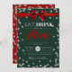 Eat Drink Silver Green Glitter Holiday Xmas Bow Invitation