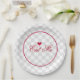 Set of eight 9” paper plates with the phrase “Eat Me” printed in red script across a grey and white chequerboard with a red heart accent. Red border. See the entire Wonderland Plate collection in the FOOD/BEV | Dishes section.