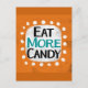 "Eat More Candy" is a fun text design with a white accent shape surrounded by white whimsical textured dots.