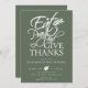 Celebrate the spirit of Thanksgiving with our "Eat Pray and Give Thanks" invitation, designed to set the perfect tone for your gathering. This elegant invitation features a warm and inviting design, encouraging guests to come together in gratitude and joy. Ideal for family dinners, friends' gatherings, or community events, it beautifully encapsulates the essence of the holiday, making it a delightful addition to your festive preparations.