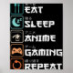 Eat Sleep Anime Gaming Repeat Fun Otaku Gamer Poster