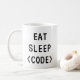 Eat sleep code Funny motivational quote coffee mug for programmer or coder. Cute Birthday gift idea for web developers, software engineer, game developers, internet geeks, webdesigners, nerds, website maker, tech startup, app builder etc. Geeky office humour. Pixelated digital text design. Custom cup with humourous saying / inspirational expression. Black and white drinkware for home and office. Buy one for coworker, employee, company boss, business partner, friend, dad, father, son, wife, daughter etc. Change quantity to get the cheap bulk pice.