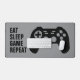 Eat Sleep Game Repeat XL gaming mouse pad for gamer. Cool design with game pad controller design and bold typography. Grey or custom background colour. Extra large size desk mat for big table.