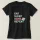 Fuel your passion with the ultimate gamer’s mantra: Eat. Sleep. Game. Repeat. This tee is perfect for those who live to play – wear it, own it, and game on!