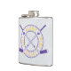 2 colour vintage look design in contrasting gold and purple colours. With crossed hockey sticks and and hockey pucks, and the text EAT SLEEP PLAY HOCKEY.