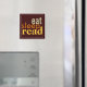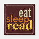 Eat, sleep, read - all the really important stuff in life! In masculine shades of sage green, burnt orange and gold all on a dark chocolate brown background.
