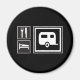 Love roughin' it in your R.V.? Black, white and grey coloured icon style pictures of amenities seen on highway road signs. A small food service symbol for eating, a motel or hotel lodging symbol for sleeping, and a HUGE rv trailer icon to show your love of camping! Get out on the road in your home away from home (on wheels) or get this for the avid roadtripper.