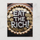 AI generated art of a pie decorated with golden coins and whipped cream that says "Eat the Rich!"