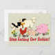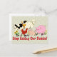 A cow, sheep, pig, rabbit and a chicken say "Stop eating our babies!" Nice way to remind meat eaters that they're eating someone's children.