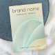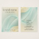 Écouter la carte d'affichage du produit avec votre marque dans une police de script moderne sur un arrière - plan avec des lignes pivotantes bleu aqua clair et jaune doré. Texte et logo personnalisables sur le dos.