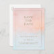 Cette aquarelle d'été coucher de soleil enregistrer la date carte postale est parfait pour votre mariage de plage tropical boho. Conçu avec un corail de pêche orange minimaliste et une aquarelle bleue poussiéreuse, accompagné d'une simple typographie dorée de sable rustique. Il est sûr de correspondre à vos vibes de mariage de destination côtière bohème moderne.