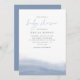 Elegant coastal baby shower invitation features a sheer dusty blue watercolor gradient along the bottom with a graceful curve that evokes the ebb and flow of the sea. Your baby shower details appear in minimalist classic lettering with handwritten script accents.