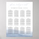 Wedding guest seating chart in dark grey and white with coastal watercolor detailing along the bottom features "please find your seat" at the top in elegant calligraphy script lettering, with your guest table assignments beneath. Space provided for up to 12 tables.