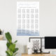 Wedding guest seating chart in dark grey and white with coastal watercolor detailing along the bottom features "please find your seat" at the top in elegant calligraphy script lettering, with your guest table assignments beneath. Space provided for up to 25 tables.