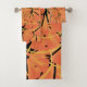 Ebony Black And Citrus Orange Tropical Art Design Bath Towel Set