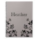 Sweet and dainty Butterfly Floral Notebook with a muted dusty grey background and ebony butterflies and floral vine embellishments. This elegant floral notebook is full of girly flair and is perfect for jotting down notes or whatever else your imagination holds! Easy to customize, simply add the personalized text of your choosing in the text fields provided. Click on the "Customize It" button to find additional personalization options.