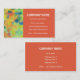Un carte de visite accrocheur avec un design abstrait rouge, orange, jaune et vert et un panneau de mandarine, avec lettrage blanc. Prêt pour vous à customiser avec vos propres détails.