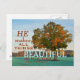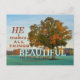 Inspirational quote postcard features beautiful autumn scene with Bible verse Ecclesiastes 3:11, He makes all things beautiful in his time. ~