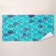Motif à échelle de sirène à carreaux vert menthe et turquoise de couleur aquamarine. Les écailles sont aquarelles peintes et certaines remplies d'eau de mer en contraste.