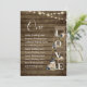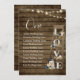 Carte de sièges de table avec échelle en bois et lettres LOVE et une lanterne décorée de fleurs. Luminaires à cordes torsadées sur le bois de grange foncé. Personnalisez avec les noms d'invités et le numéro de table.