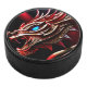 Un dragon qui respire le feu avec une vibrante échelle rouge et or, avec des yeux bleus présentant ses dents d'or terriblement grandes, ombrage et textures réalistes, détail élevé, angle rapproché, arrière - plan sombre avec des points saillants, peinture numérique résolution 4k, éclairage cinématique, atmosphère effrayante.Sur cette photo d'intelligence artificielle.