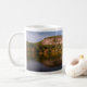 The beautiful Echo Lake in New Hampshire's White Mountains. Peak autumn colours add beauty to the scene. Full wrap mug.