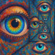 “Echoes in the Iris” - A Surreal Portrait. A bold, stylized impasto-painted eye multiplies endlessly in a tunnel of mirrored reflections, its colours dancing between fire and water. Each echo recedes into the distance, symbolizing the gradual shifting of identity through time. The piece merges painterly intensity with surreal repetition, exploring the beauty and disquiet of endless self-examination.