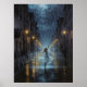 A dreamy digital oil-painted night scene where a girl dances joyfully in the rain on a glowing city street, lights reflecting off the wet pavement in a dazzling, romantic celebration of freedom and love.
