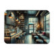 The painting captures a moody and stylish scene inside a small, eclectic, hip café in Seattle. The café's interior combines urban and rustic elements, featuring exposed brick walls alongside modern metallic fixtures. The colour scheme is dominated by dark greys with vibrant neon accents, creating a trendy, youthful ambiance. The furniture is an intriguing mix of vintage plush sofas and minimalist bar stools, adding to the eclectic charm. A prominent glass door opens to the busy street outside, linking the café's intimate interior with the city's dynamic life. Artistic details such as abstract paintings and industrial-style lamps contribute to the hip atmosphere, while unique, geometric-shaped lights cast soft, ambient lighting, creating intriguing shadows and enhancing the overall moody and fashionable vibe of the café.