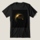 The T-shirt features a bold, eye-catching design of a total solar eclipse. The sun's radiant corona shines brightly from behind the dark silhouette of the moon, creating a dramatic contrast. The design is simple yet powerful, with the eclipse taking center stage against a black background.