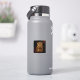 Eclipse Majesty, showcase a leopard with glowing golden fur and distinctive spots, set against a dark background. The leopard's eyes are illuminated in bright purple, creating a striking and mystical effect. The dark surroundings are accented by scattered, warm lights, giving the scene a dramatic almost otherworldly atmosphere.