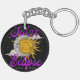 Porte - clé noir rond avec soleil vintage et lune pour célébrer l'éclipse solaire 2024