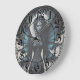A mesmerizing figure adorned in a raven-like gown and dark, expansive wings stands illuminated by a radiant halo. Her serene, powerful presence is enhanced by delicate butterflies fluttering around her, adding a touch of whimsy to the mystical scene.