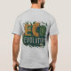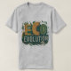 Eco Evolution t-shirt design features the phrase "Eco Evolution" in vibrant, multi-coloured lettering. The design incorporates nature-inspired elements like leaves, flowers, and animals, symbolizing the interconnectedness of all living things and the importance of preserving our planet. The overall aesthetic is playful and colourful, reflecting the optimism and hope associated with environmental sustainability.