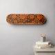 A skateboard with interesting and diverse abstract design consisting of various circular shapes in different styles connected by thin lines like a network or ecosystem.