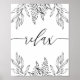 Ecriture de détente Bain peint poster d'art - noir et blanc feuilles