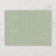 Nous vous présentons notre superbe choix de menu de réponse de carte postale avec écriture fantaisiste | sage parfait pour votre simple célébration printanière moderne boho. Notre design élégant comprend une palette de couleurs pastel vives et lumineuses avec une écriture calligraphique chic vintage. Que vous préfériez un style minimaliste ou classique, notre produit unique et éditable offre luxe et élégance, parfait pour créer une touche classe et romantique qui rendra votre journée spéciale inoubliable. Contactez-nous pour toute question sur le design, et laissez-nous vous aider à créer le mariage de vos rêves.