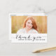 Carte postale Merci de diplôme de de la photo manuscrite tendance en noir. Design par Elke Clarke © Visitez notre boutique www.zazzle.com/monogramgallery* pour plus de couleurs et de styles. Ajoutez votre propre photo et texte. Une simple typographie noire chic recouvre un arrière - plan blanc avec les mots "Merci". Remplacez l'exemple de photo par le vôtre.