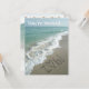"Je t'aime" écrit dans le sable sur une plage avec du sable brun clair, des vagues blanches et de l'eau bleu aqua claire. Parfait pour votre événement de plage romantique, fête de fiançailles, douche de mariée ou cérémonie de mariage informelle. Également disponible avec d'autres écritures, y compris Merci, Sauvegarder la date, RSVP et Vous êtes invité.
