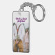 Porte - clé avec World's Best petite amie en texte violet 3D. Customisez-le avec votre propre photo.