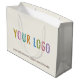 Sometimes you only need a few custom printed gift bags, so here is a great way to get just what you need in the colour and design you want. Personalize this gift bag online with your own company logo, custom text, and colour. Available in matte or glossy finish. The largest size is 12.5 inch x 4 inch x 9 inch. Made by Digiwrap. No minimum order quantity and no setup fee.