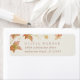 Charmante étiquette d'adresse de retour ornée de feuilles d'automne à l'aquarelle en cascade, parfaite pour les mariages, les douches de mariée ou les célébrations saisonnières. Caractéristiques riches tons automnaux et une police serif classique pour élever vos enveloppes avec une élégance saisonnière.