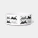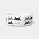 Peinture de quatre silhouettes de chats en noir et gris, imprimée quatre fois sur un plat pour animaux de compagnie, avec un espace réservé pour ajouter le nom de l'animal. Customisez facilement le nom sur le formulaire modèle.