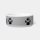 Ajoutez le bol de nourriture de nom d'animaux familiers est une cuvette adorable avec quatre empreintes de pattes noirs autour de elle. Le nom d'animal familier sur l'avant dans de grandes lettres pour son nom. Modèle facile disponible pour écrire votre nom d'animal familier.