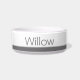 Un plat personnalisé dans les tons gris et blanc. Le nom de votre animal est placé dans une police gris moderne au-dessus d'une bordure de nuances de gris coordonnés.