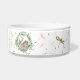 Des lapins et des couronnes florales sur les graines de pissenlit. Grande écuelle pour chien/chat. 100% céramique blanche