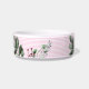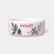 Un bol d'animaux de compagnie design moderne avec motif à rayures blanches et roses avec baies rouges d'hiver et verdure pour votre charmant compagnon. Cliquez pour "Personnaliser le Modèle" pour écrire le nom de votre chien. Aimez Les Chiens, Toujours !