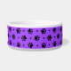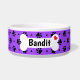 Empreintes de pattes de chien noir et motif de coeur avec une couleur arrière - plan violette personnalisée sur la nourriture pour chien et les bols d'eau. Ce motif peut être facilement agrandi ou réduit à votre préférence et choisir votre couleur arrière - plan préférée. Personnalisez ce plat avec le nom de votre chien imprimé sur l'os de chien blanc accentué d'un coeur rouge. Idée cadeau mignonne pour n'importe quel chien parent!