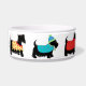 Customisez ce plat de nourriture pour animaux de compagnie pour montrer votre amour des chiens écossais Terrier et personnalisez avec le nom de votre chien dans le centre. Le design coloré est composé de 6 chiens écossais noirs dans une gamme colorée de vêtements pour chiens. Ces écossais mignonnes et adorables portent des manteaux ou des tee - shirts en chandail de chien colorés et l'un d'eux a un casquette de luge. Les couleurs sont le rouge, la lavande, le violet, le jaune, le bleu turquoise turquoise, le vert citron et l'orange avec empreintes de pattes, étoiles, rayures, chèques et motifs de flocon de neige. Ces chiens fantaisistes et branchés sont l'art original de Phyllis Dobbs et feront fondre le coeur d'un amoureux des chiens. Ces écossais pour animaux domestiques sont à la fois individuellement et sur des blocs colorés avec des bordures pour coordonner les produits. Tous sont entièrement personnalisables pour en faire votre propre !